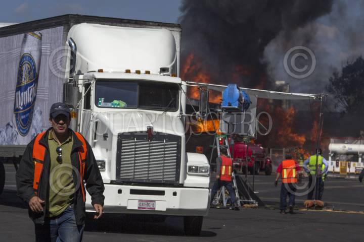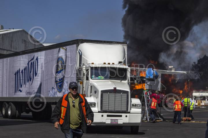 MÉXICO, D.F., 19ABRIL2015.- Elementos de protección civil, Bomberos y Policías capitalinos a la fabrica de la Cervecera de grupo Modelo donde se registro un incendio que dejo una columna de humo por varios kilómetros. FOTO: ENRIQUE ORDÓÑEZ /CUARTOSCURO.COM