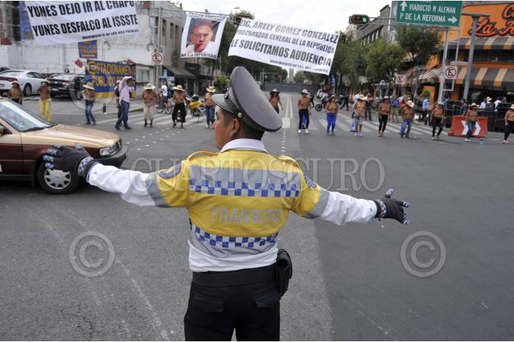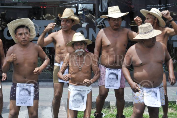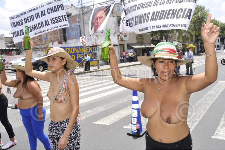 MÉXICO, D.F., 11SEPTIEMBRE2015.- Integrantes los 400 pueblos se manifestaron bailando semi-desnudos en las inmediaciones de la Secretaria de Gobernación donde exigieron un juicio político contra el diputado Miguel Ángel Yunes Linares y exigieron una audiencia con la titular de la PGR. FOTO: SAÚL LÓPEZ /CUARTOSCURO.COM