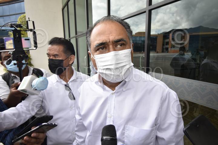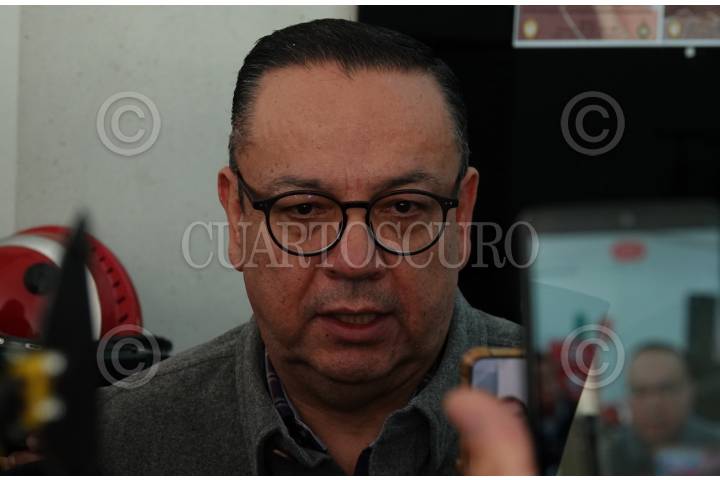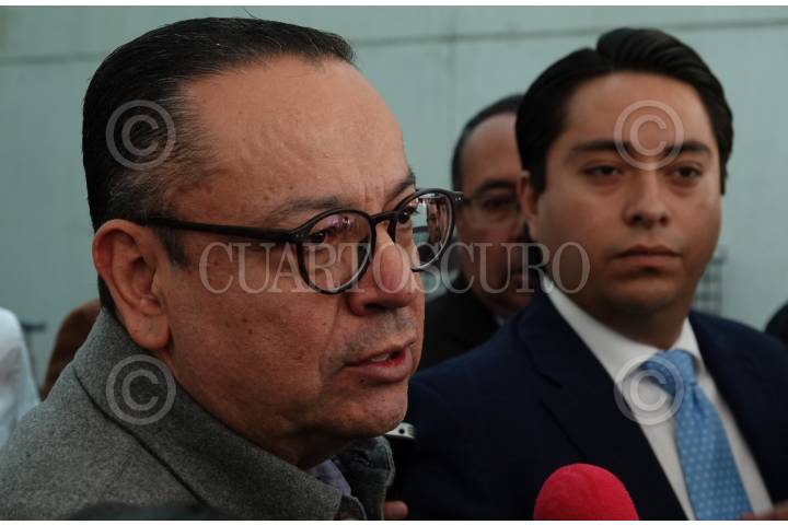 Santiago Creel, presidente de la mesa directiva de la Cámara de Diputados, es abordado por representantes de los medios de comunicación en la sala de prensa del Recinto Legislativo de San Lázaro.