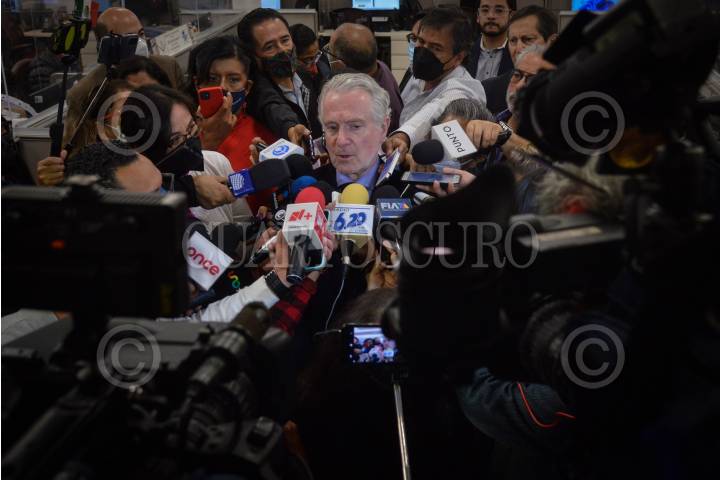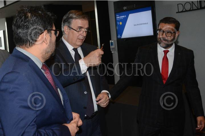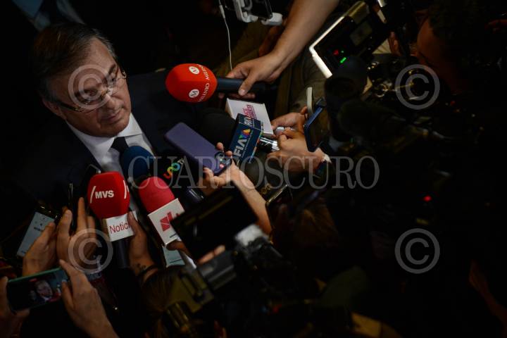 Marcelo Ebrard, secretario de Relaciones Exteriores, ofreció mensaje a los medios de comunicación luego de sostener una reunión privada con integrantes de la Unión Nacional de Trabajadores (UNT).