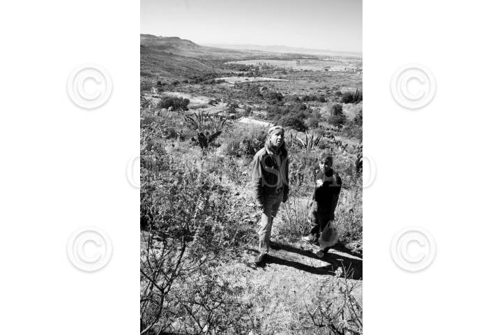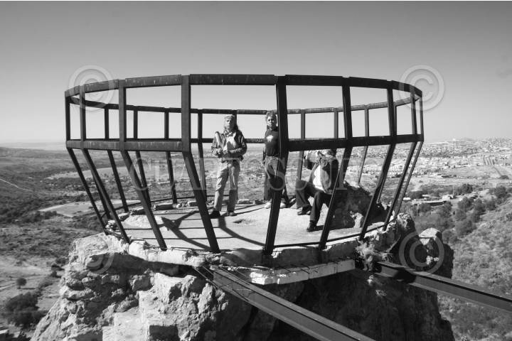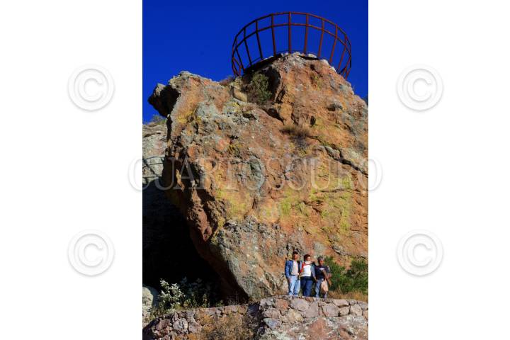 ZACATECAS, ZACATECAS, DICIEMBRE2008.- CHAMAN: EL SOL QUE SE LLEVA DENTRO.- La sagrada piedra del Águila es donde el chaman Aramsati deposita su misticismo; en el mundo de los chamanes el águila es el animal que representa la búsqueda de lo espiritual y la trascendencia de la conciencia. Esta singular roca toma su nombre de la forma que posee, ya que asemeja a una águila apunto de emprender el vuelo; en la cima de dicha roca, Aramsati se ha propuesto construir un armazón de metal con forma circular, el asegura que esa es su "nave", en la cual despegara de aquí el día en que su mente se desarrolle de forma total. Aramsati es el propietario de esta cañada, en la cual pretende congregar a sus amigos chamanes, para hacer uso de los espacios de siembra y del manantial, para entregarse a una vida de conciencia sana y alejada del mecanismo de la sociedad actual; esto con el fin de lograr una calidad de pensamiento tal que los haga trascender hacia otros niveles del ser. Aramsati afirma que todo lo natural es la creación y obra de dios, del universo; y en contraparte, las ciudades, las maquinas, los alimentos enlatados, y las cosas artificiales son la creación y obra del hombre, es lo que lo mantiene atorado en si mismo, incapacitándolo para lograr la trascendencia que tanto anhela. FOTO: COSME RADA/CUARTOSCURO.COM