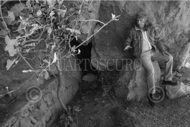 ZACATECAS, ZACATECAS, DICIEMBRE2008.- CHAMAN: EL SOL QUE SE LLEVA DENTRO.- En el corazon de la piedra del Águila, Aramsati descubrió una cueva que decidio inspeccionar; esto fue devidó a que para el chaman la oscuridad del ser es algo muy importante, y algo que se debe de tomar mucho en cuenta, pues si una persona no conoce su lado oscuro no puede nunca conocer la luz, para poder llegar a la grandesa del pensamiento y a la luz del ser, primero se deve de vencer la oscuridad; de otro modo siempre habra algo que impedira la trascendencia plena en las personas que pretenden lograr su purificacion. Es asi como Aramsati valora este lugar dentro de la piedra, lugar oscuro y frio; lleno de moscas y animales que convierten esa oscuridad en un lugar temible para vencer, asi como la oscuridad del ser de la que habla Aramsati, esa oscuridad que las personas temen ver, que las devora y los mantiene en un agujero sin poder ver la luz de la vida. Se deve de conocer el bien y el mal, dice Aramsati, pues no puede existir el uno sin el otro, asi es como devemos de llevar la vida, conocer nuestro lado iluminado, nuestro lado bueno, y nuestro lado oscuro, nuestro lado malo, recomienda el Chaman. FOTO: COSME RADA/CUARTOSCURO.COM