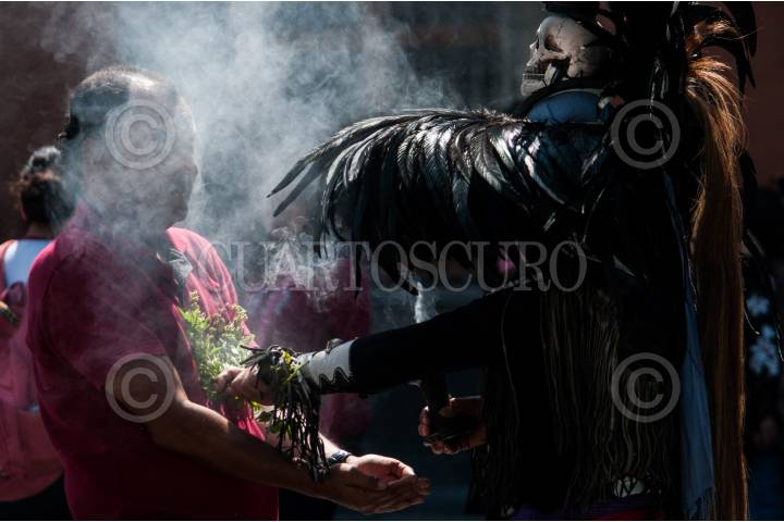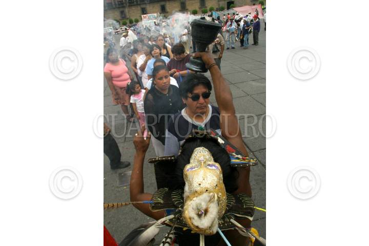 MEXICO, D.F. 18AGOSTO2005.- Le realizarón una limpia al diputado Pablo Gómez, unos danzantes en la explanada del Zócalo capitalino. FOTO: Oscar López/CUARTOSCURO.COM