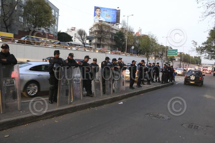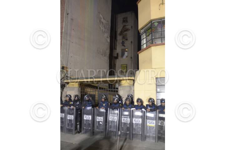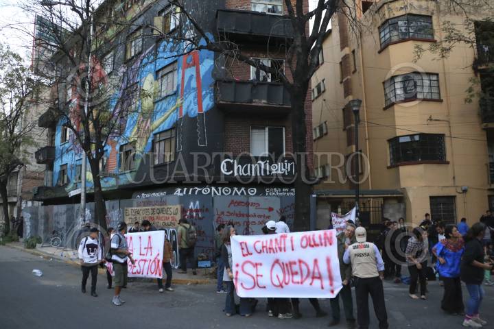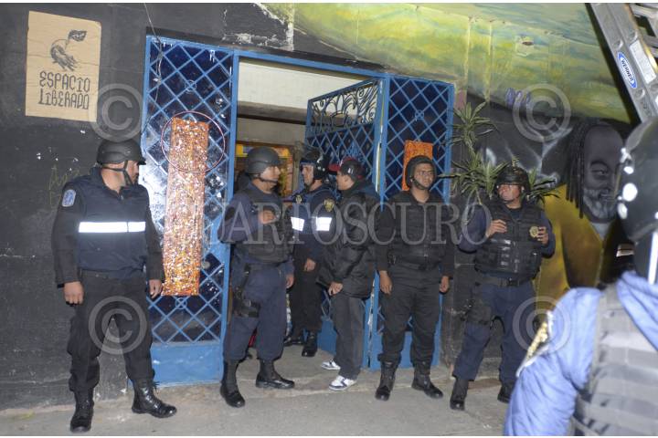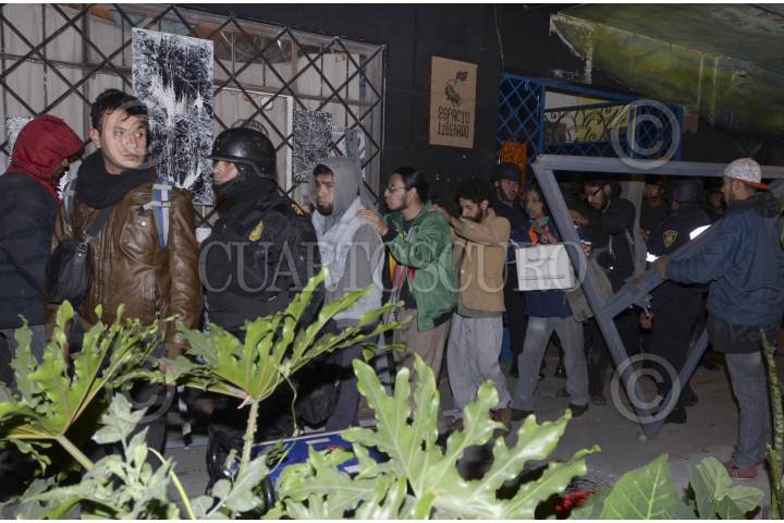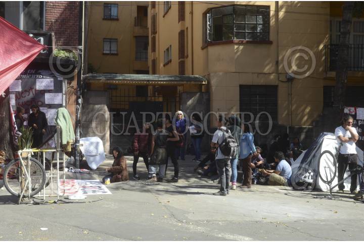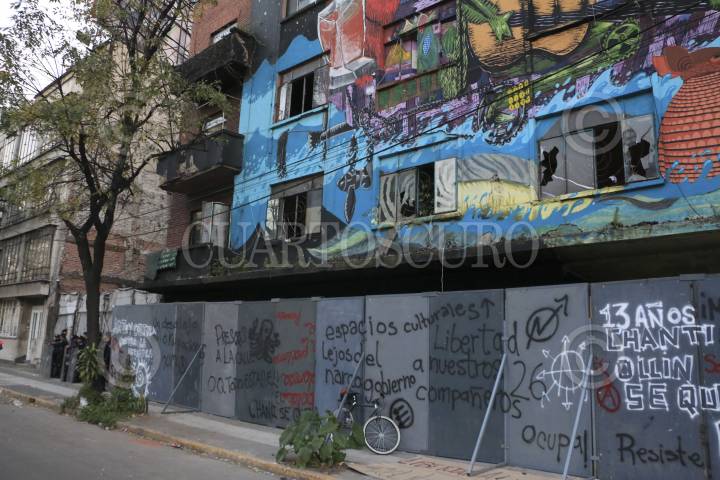 CIUDAD DE MÉXICO, 23NOVIEMBRE2016.- Activistas desalojados del inmueble conocido como Chanti Ollin, ubicado en avenida Rio Elba y Circuito Interior, instalaron un campamento de resistencia para presionar a las autoridades para que les sea devuelto este espacio que era ocupado para la creación artística, policías custodian el edificio. FOTO: ARMANDO MONROY /CUARTOSCURO.COM