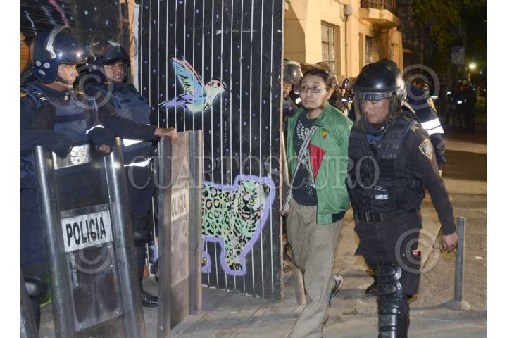 CIUDAD DE MÉXICO, 22NOVIEMBRE2016.- Jóvenes se manifiestan tras el desalojo del Centro Cultural Okupa Chanti Ollin ubicado en el cruce de Circuito Interior y Rio Elba en la delegación Cuahutemoc. FOTO: SAÚL LÓPEZ /CUARTOSCURO.COM