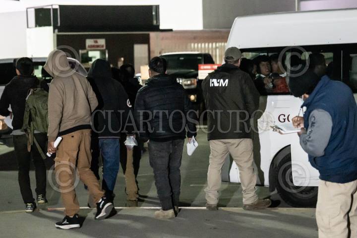 TIJUANA BAJA CALIFORNIA 21ENERO2025.- Decenas de migrantes fueron deportados esta noche por el puerto de entrada El Chaparral. A las 7 de la noche de este martes 21 de enero, alrededor de 100 migrantes fueron deportados de los Estados Unidos, por el cruce peatonal del Chaparral de la frontera de Tijuana. Un grupo de migrantes al salir manifestaron que fueron sorprendidos por autoridades de migración cuando realizaban sus labores en los campos de Denver, Colorado. Uno de los repatriados señaló que el presidente Donald Trump, le está haciendo mucho daño a personas que trabajan dentro del país norte americano. “Que realmente le está haciendo mucho daño a personas trabajadoras como a nosotros”, señaló un de los migrantes antes de subir a una unidad del Instituto de Migración de México. Los repatriados salieron en grupos de 15 a 20 personas y fueron subiendo a vagonetas blancas del Instituto de Migración. Se desconoce a qué punto de la ciudad los llevaron. FOTO: OMAR MARTÍNEZ/CUARTOSCURO.COM