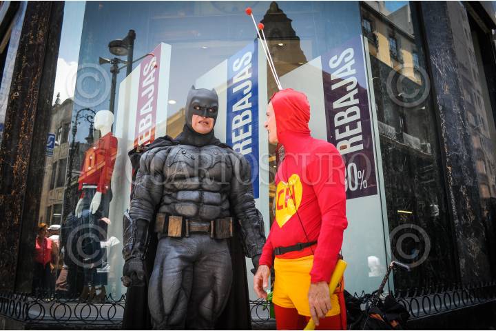 CIUDAD DE MÉXICO, 15JULIO2017.- Ante la crisis económica, los superhéroes Batman y el Chapulín Colorado unen sus fuerzas para ganarse unas monedas por las calles del centro histórico. FOTO: DIEGO SIMÓN SÁNCHEZ /CUARTOSCURO.COM