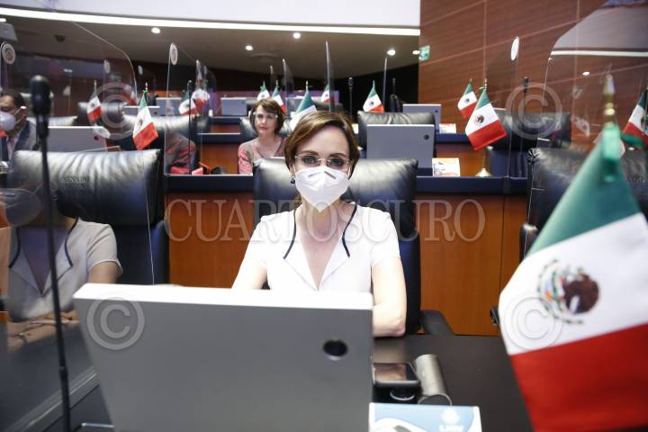 La senadora panistas Lilly Téllez, quien anteriormente era de Morena, durante la sesión.