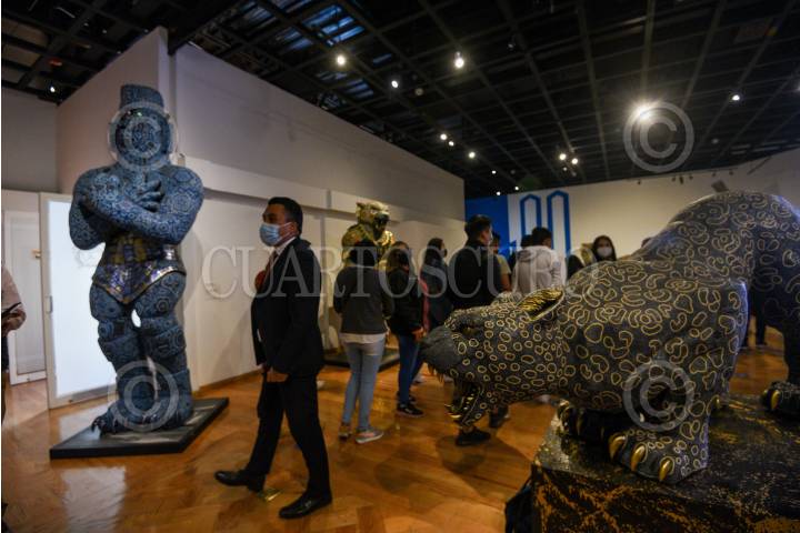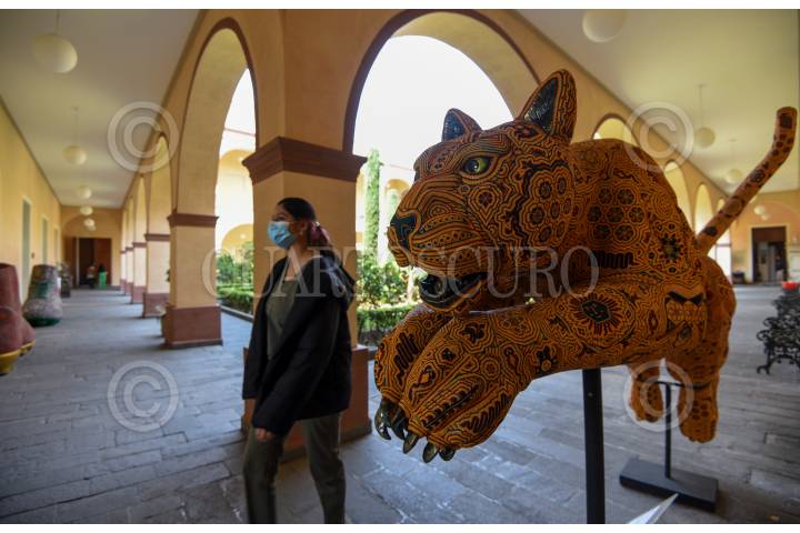 La Sala “Fernando Cano” del edificio de Rectoría de la UAEMex alberga la exposición “Pasiones por México” que esta compuesta por 39 esculturas de gran formato con chaquira que reflejan el arte de los indígenas wixáricas.
