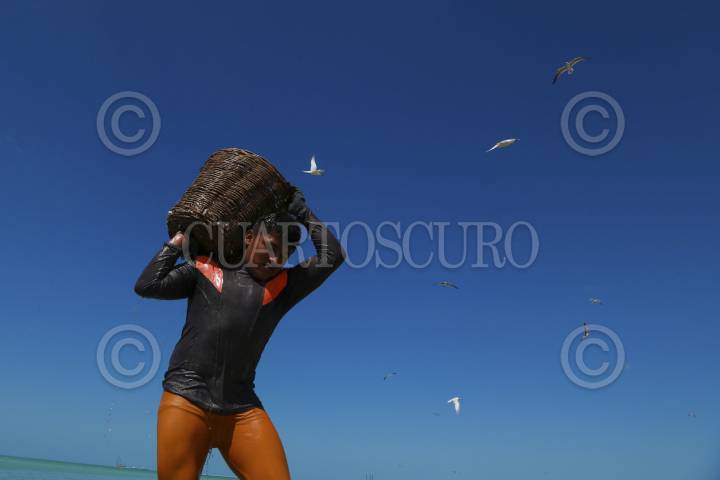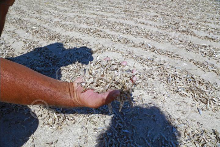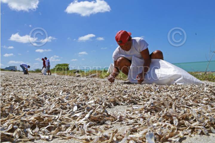 SEYBAPLAYA, CAMPECHE, 25FEBRERO2018.- En el litoral de Seybaplaya y Champotón, algunos hombres del mar se dedican a la captura de charal. La jornada inicia desde las 4 o 5 de la mañana y culmina a medio día con el proceso de “limpieza y secado” del charal. Posteriormente el pescado es embolsado y comercializado. Un costal de charal pesa aproximadamente entre los 15 y 20 kilogramos. Los cinco principales estados generadores de este alimento son Michoacán, Jalisco, Estado de México, Guerrero y Campeche. FOTO: MAIRA TULIA PÉREZ BOCANEGRA /CUARTOSCURO.COM