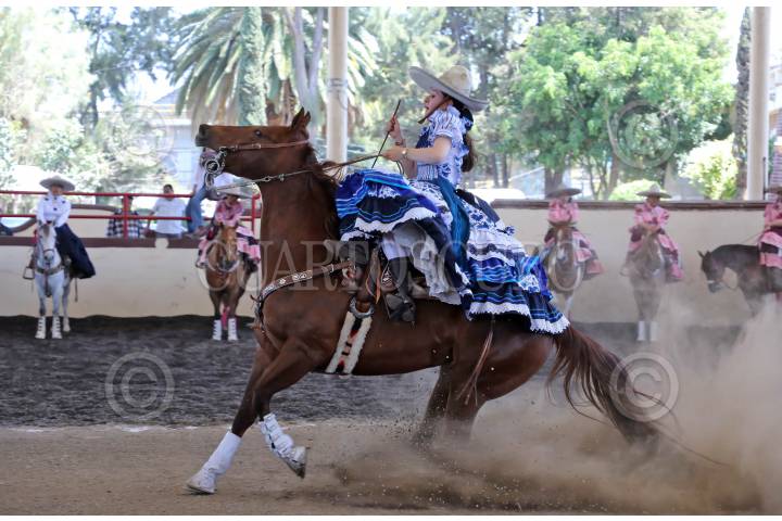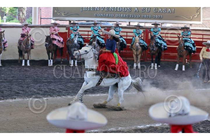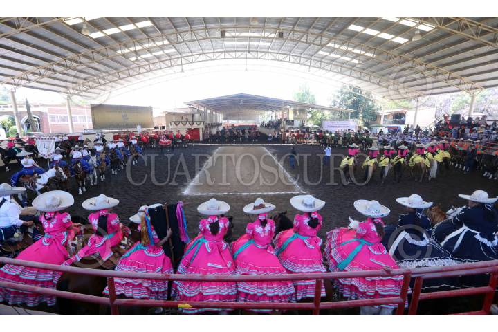 CIUDAD DE MÉXICO, 17MARZO2025.- El coordinador técnico de Cultura y Deporte del Instituto Mexicano del Seguro Social (IMSS), Héctor García Antonio, encabezó el evento “Cuna de la 1er Feria de Escaramuzas a Nivel Nacional IMSS 2025”, que busca promover la adopción de hábitos saludables a través del deporte para prevenir enfermedades crónico-degenerativas y reducir la tasa de obesidad en niñas y niños en etapa escolar. En el Lienzo Charro “Carlos Rincón Gallardo” se dieron cita más de 16 equipos femeniles que forman parte de los primeros planos nacionales de la Asociación Deportiva Institucional de Charros del IMSS, a través de los cuales, el Seguro Social busca relanzar esta disciplina y tener presencia en competencias de talla internacional. Durante el evento, los equipos representativos conformados por ocho mujeres hicieron gala de sus vestidos de adelitas y ejecutaron rutinas a caballo donde dieron muestra de esta tradición mexicana que busca acercar a la comunidad a esta tradición. FOTO: IMSS/CUARTOSCURO.COM