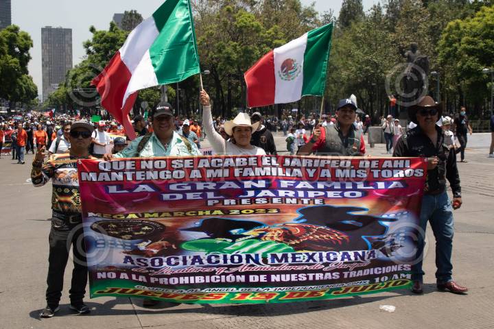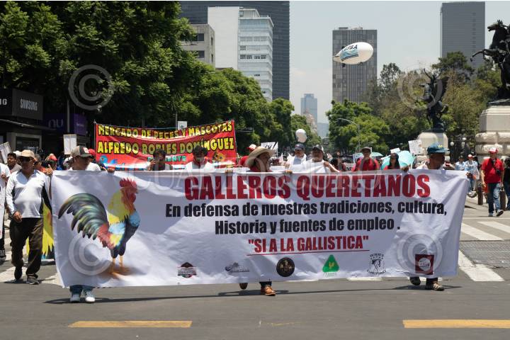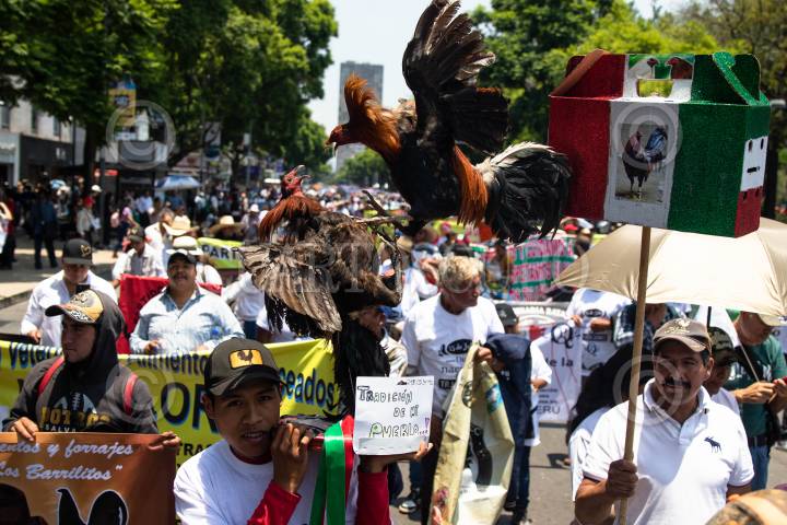 Galleros de toda la república marcharon del Ángel de la Independencia al Zócalo para mostrar su repudio a la ley que busca prohibir el uso de animales en eventos tradicionales mexicanos, como las peleas de gallos en palenques.