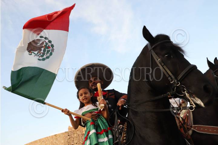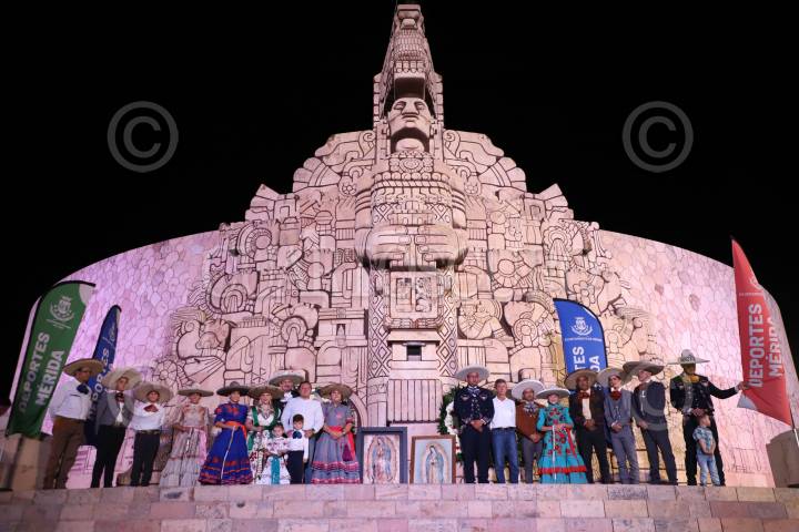 MÈRIDA, YUCATÀN, 14SEPTIEMBRE2023.- Se realizò la tradicional cabalgata y ofrenda floral para conmemorar el "Dìa de la Charrerìa" en Mèxico, participaron decenas de charros de todo el estado quienes celebran que desde el 2016 la UNESCO declarò esta práctica de esta expresión artística Patrimonio Cultural Inmaterial de la Humanidad. La charrería es un arte y disciplina surgida de las actividades ecuestres y tradiciones ganaderas que hoy en día se considera el deporte mexicano por excelencia. FOTO: MARTIN ZETINA/CUARTOSCURO.COM