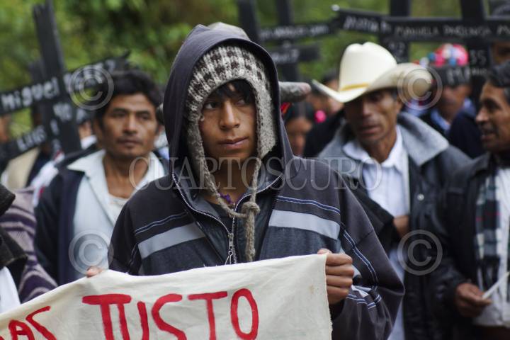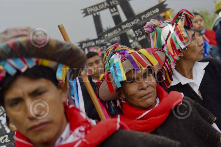 CHENALHÓ, CHIAPAS, 22DICIEMBRE2012.- Con motivo del 15 aniversario de la "masacre de Acteal", cientos de personas y organizaciones sociales tales como el Movimiento por la Paz con Justicia y Dignidad, representantes del Centro de Derechos Humanos Fray Bartolomé de las Casas, comuneros de Cheran, entre otras, se dieron cita en la comunidad de Acteal de este municipio invitados por la Sociedad Civil "Las Abejas", para conmemorar la matanza con una misa como cada 22 de diciembre. FOTO: PEDRO ANZA /CUARTOSCURO.COM