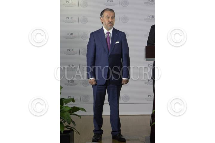 CIUDAD DE MÉXICO, 30NOVIEMBRE2016.- El procurador general de la República Raúl Cervantes Andrade ofreció conferencia de prensa en donde anunció el pago de 250 millones de pesos al estado de Veracruz, esto tras la recuperación de 421 mdp desviados por el gobernador prófugo Javier Duarte. FOTO: GALO CAÑAS /CUARTOSCURO.COM