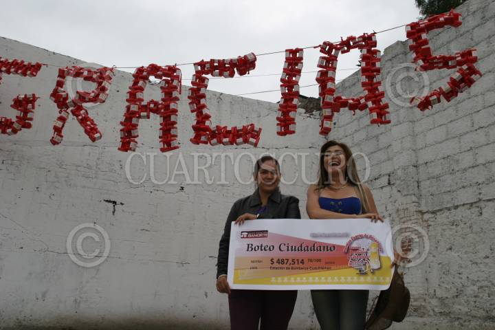 México, D. F. 11 Julio 2004.- La delega en Cuauhtemoc Virginia Jaramillo y la cantante Claudia Pichardo, muestran el cheque con el resultado del boteo para la construcción de la estación de bomberos dicha demarcación. FOTO: Nelly Salas/CUARTOSCURO.COM