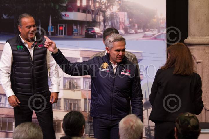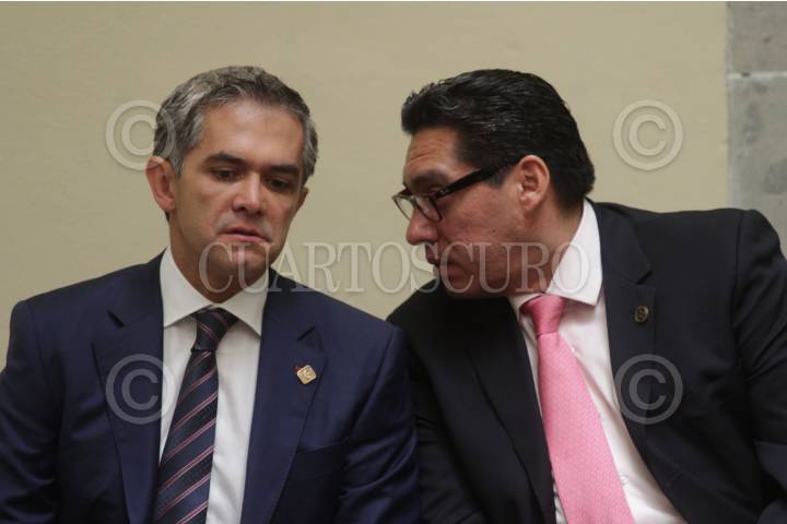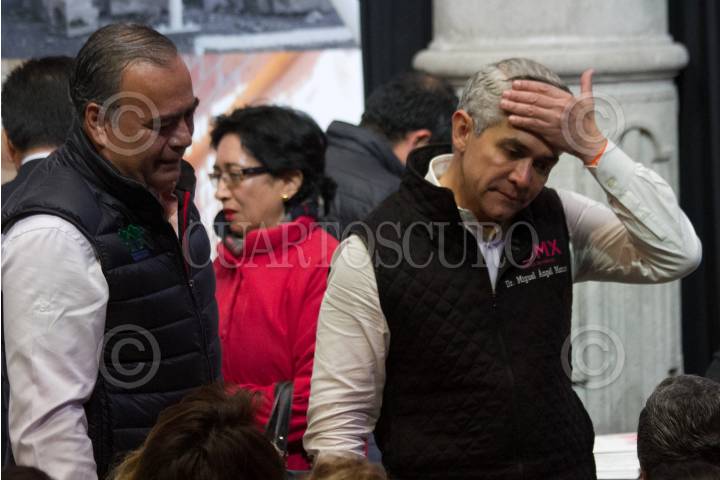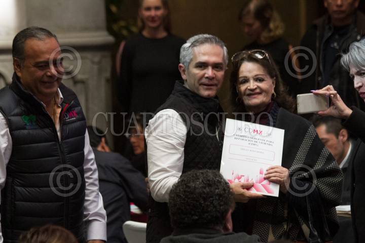 CIUDAD DE MÉXICO, 21NOVIEMBRE2017.- Miguel Ángel Mancera, Jefe de Gobierno, y Raymundo Collins, director del Infonavit, entregaron cheques a personas que fueron afectadas sus casas en los sismos de septiembre. FOTO: MOISÉS PABLO /CUARTOSCURO.COM