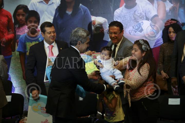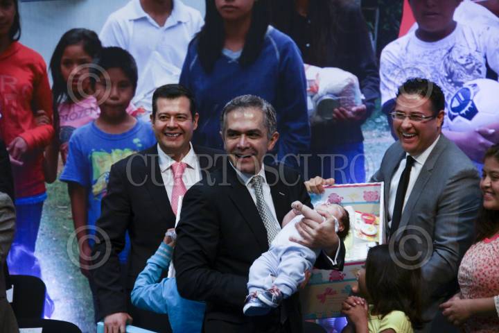 CIUDAD DE MÉXICO, 19JULIO2016.- Miguel Ángel Mancera Espinosa, jefe de Gobierno, encabezó el Programa Financiamiento para la Asistencia e Integración Social (PROFAIS) 2016, donde entregó cheques de apoyo a diversas fundaciones y le entrego a Abigaíl Velázquez,una cuna en el Patio Oriente del Antiguo Palacio de Ayuntamiento. FOTO: ANTONIO CRUZ /CUARTOSCURO.COM