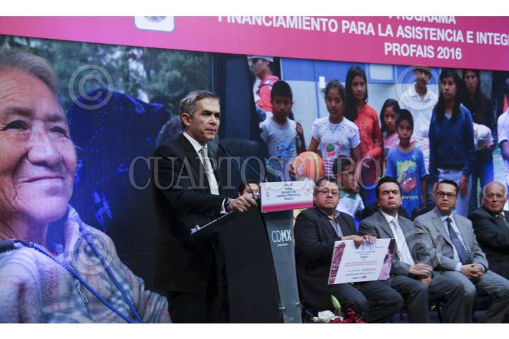 CIUDAD DE MÉXICO, 19JULIO2016.- Miguel Ángel Mancera Espinosa, jefe de Gobierno, encabezó el Programa Financiamiento para la Asistencia e Integración Social (PROFAIS) 2016, donde entregó cheques de apoyo a diversas fundaciones en el Patio Oriente del Antiguo Palacio de Ayuntamiento. FOTO: ANTONIO CRUZ /CUARTOSCURO.COM