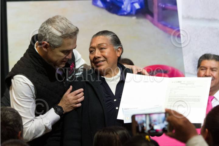CIUDAD DE MÉXICO, 30NOVIEMBRE2017.- Raymundo Collins, director del Infonavit, y Miguel Ángel Manceras, Jefe de Gobierno, entregaron créditos a personas afectadas en sus viviendas por los sismos de septiembre en las delegaciones de Tláhuac y Xochimilco. FOTO: MOISÉS PABLO /CUARTOSCURO.COM