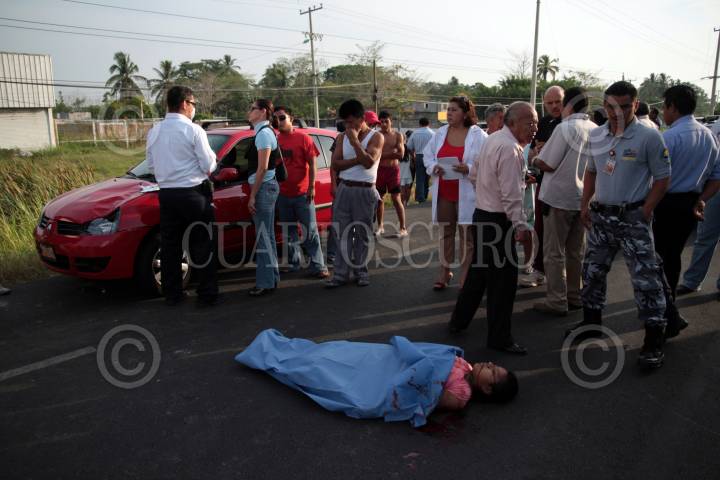 VILLAHERMOSA, TABASCO, 29ABRIL2009.- Una joven madre pierde la vida al ser atropellada cuando intentaba cruzar la carretera federal Villahermosa-Frontera a la altura del kilómetro siete más trescientos. Los hechos se registraron alrededor de las 08:10 horas cuando la occisa fue alcanzada por la conductora de un chevy rojo que iba a exceso de velocidad. FOTO: MARCO POLO GUZMÁN HERNÁNDEZ/CUARTOSCURO.COM