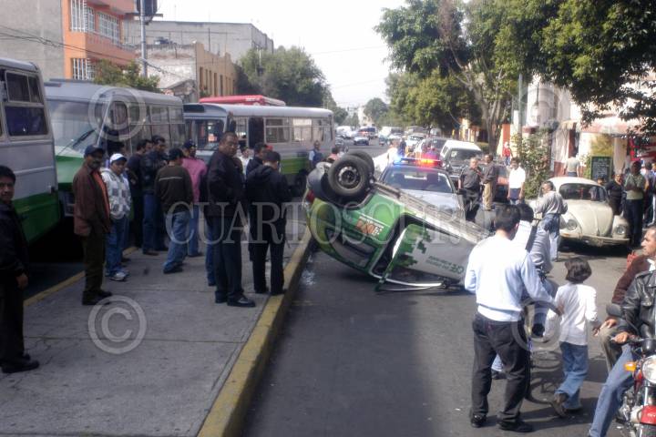 MEXICO, D.F., 16JULIO2010.- Integrantes del Sindicato Mexicano de Electricistas (SME), marcharon por varias calles y avenidas de la capital con dirección al Zócalo, causando destrozos en algunas de las unidades que encontraban a su paso de la Compañía Federal de Electricidad (CFE). En Avenida Doctor Rió de la Loza y Doctor Andrade, volcaron un auto Chevy que circulaba por la zona con logotipos de la CFE y calles mas adelante le rompieron los cristales a una camioneta tipo pick up que resguardaba una planta móvil de electricidad. FOTO: LUIS CARBAYO/CUARTOSCURO.COM