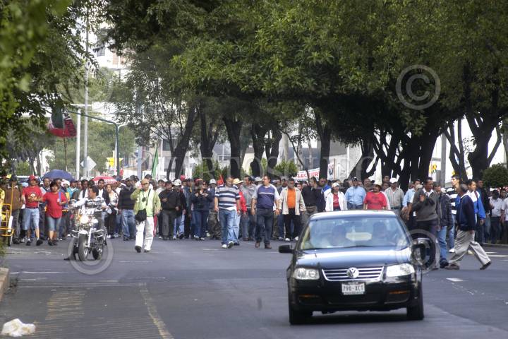 MEXICO, D.F., 16JULIO2010.- Integrantes del Sindicato Mexicano de Electricistas (SME), marcharon por varias calles y avenidas de la capital con dirección al Zócalo, causando destrozos en algunas de las unidades que encontraban a su paso de la Compañía Federal de Electricidad (CFE). FOTO: LUIS CARBAYO/CUARTOSCURO.COM