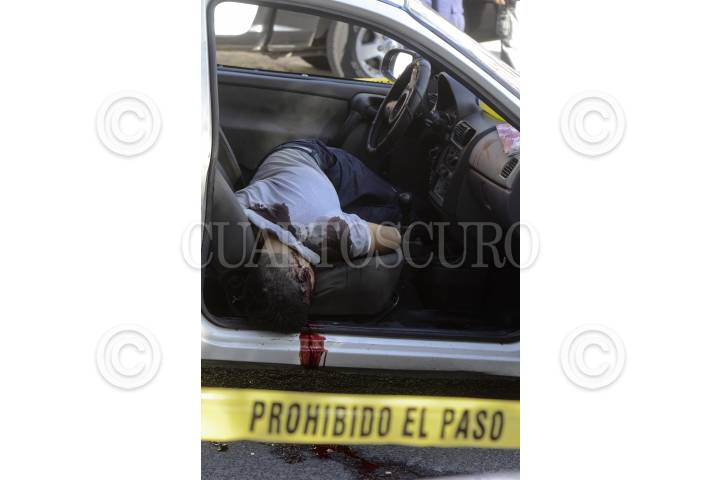 MÉXICO, D.F., 13JUNIO2010.- Un sujeto de nombre Ricardo Villalobos Téllez de 37 años, fue ejecutado a bordo de su auto Chevy con un disparo de arma de fuego en el cráneo cuando se disponía a abrir un local de farmacia con razón social “Farmacias del Doctor Villalobos” de su propiedad, ubicada en avenida Carmelo Pérez esquina con avenida Chimalhuacan colonia Benito Juárez, perímetro del municipio de Nezahualcoyotl; de los delincuentes quienes lograron darse a la fuga se desconocen características. FOTO: LUIS CARBAYO/CUARTOSCURO.COM