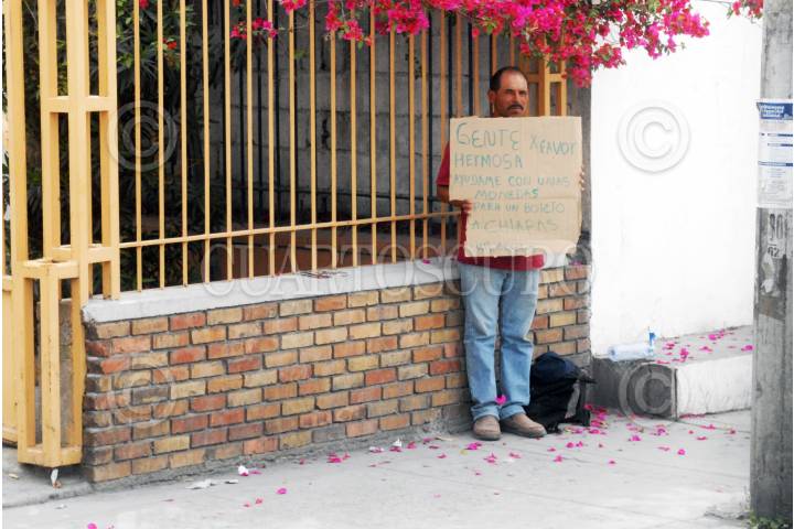 MONTERREY, NUEVO LEÓN, 16MARZO2016.- Un hombre en situación de calle muestra a la gente un letrero en el que pide dádivas para poder regresar al estado de Chiapas, de donde afirma es natural, llegó a esta ciudad en busca de trabajo que no ha logrado conseguir. FOTO: JOAQUÍN MURRIETA /CUARTOSCURO.COM