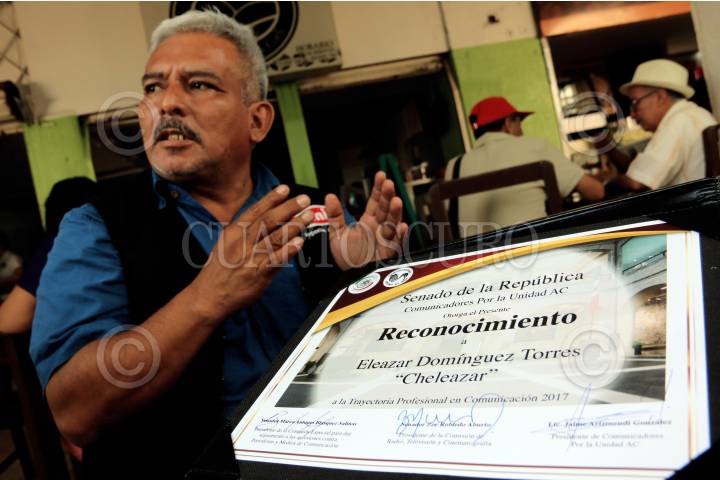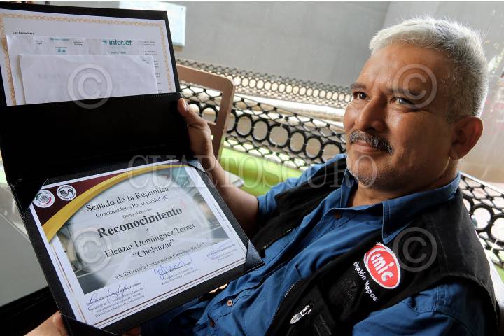 TUXTLA GUTIERREZ, CHIAPAS, 09JUNIO2017.- Eleazar Domínguez Torres, chiapaneco, uno de los 132 periodistas reconocidos en el Senado de la República por su labor periodística en el marco del dia de la Libertad de Expresión. FOTO: JESÚS GARCÍA /CUARTOSCURO.COM