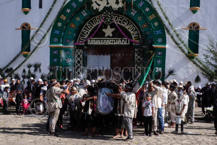 SAN JUAN CHAMULA, CHIAPAS, 20JUNIO2025.- Los pobladores de la comunidad de Tres Cruces, en este municipio tsotsil, celebran el Día de Corpus Christi con una misa católica y diversas expresiones de la cultura tradicional maya tsotsil, que reflejan el sincretismo religioso y la fuerza de sus raíces comunitarias. FOTO: ISABEL MATEOS HINOJOSA /CUARTOSCURO.COM
