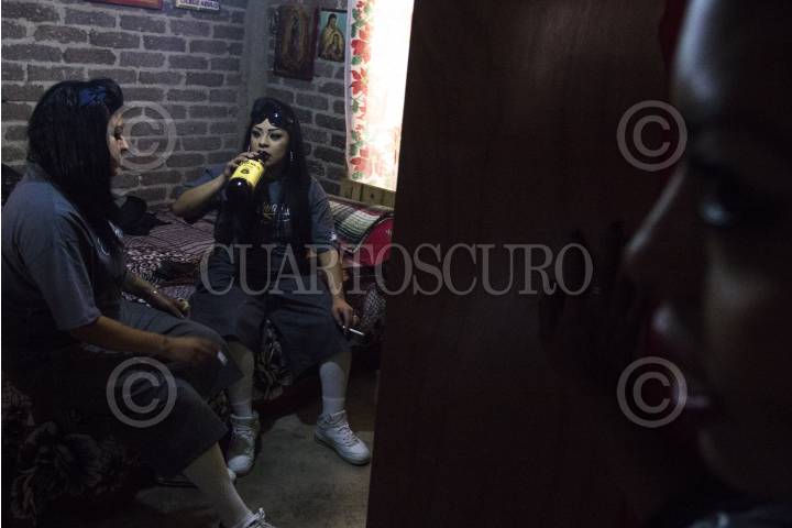 CHICONAUTLA, ESTADO DE MÉXICO, 23ENERO2016.- La palabra cholo proviene del náhuatl “Xólotl”, dios de la mala suerte, y algunas civilizaciones lo identifican como hermano gemelo de Quetzalcóatl. En la actualidad la palabra cholo se retomó en algunas partes de Estados Unidos para discriminar a los inmigrantes mexicanos que radican en ese país; es utilizada en su mayoría en el sur de California, donde nació el término “sureños” que ha sido adoptado por los cholos en México. A pesar de vivir en puntos muy alejados entre ellas, “Las Maniakas” hacen lo posible por reunirse una vez a la semana para compartir sus vivencias. Con cerveza en mano y fumando algún cigarro platican y bromean entre sí junto con sus amigos y novios en un ambiente que más de amistad lo consideran familiar. FOTO: ENRIQUE ORDÓÑEZ /CUARTOSCURO.COM