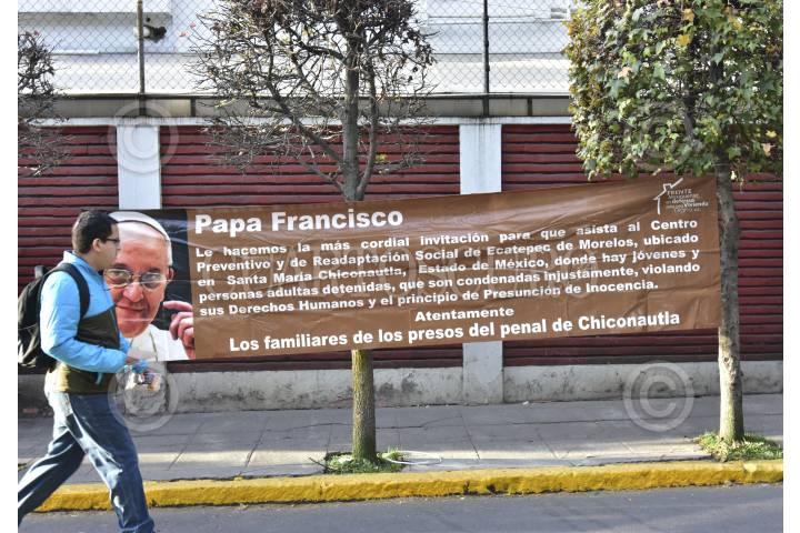 CIUDAD DE MÉXICO, 08FEBRERO2016.- Familiares de los presos del penal de Chiconautla acudieron a la Nunciatura Apostólica, ubicada en la calle de Juan Pablo II de la colonia Guadalupe Inn, para que visite a los reos este penal que se ubica en Ecatepec. FOTO: ARMANDO MONROY /CUARTOSCURO.COM