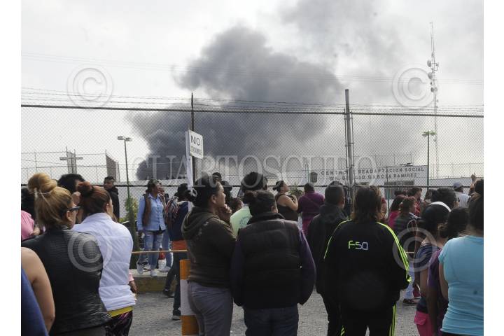 ECATEPEC, ESTADO DE MÉXICO, 30OCTUBRE2017.- Se registro un riña al interior del penal de Chiconautla, 300 elementos de la policía mexiquense tuvieron que intervenir para tomar el contral. Los hechos se registrarona las 07:45 horas cuando reclusos intentaron agredir al reo Luis "N", el domingo fueron trasladados varios internos que presuntamente le brindaban protección. Se reportaron dos heridos; un reo y un custodio. Se pudo observar una columna de humo negro, lo que alerto a los familiares de los internos. FOTO: ARMANDO MONROY /CUARTOSCURO.COM