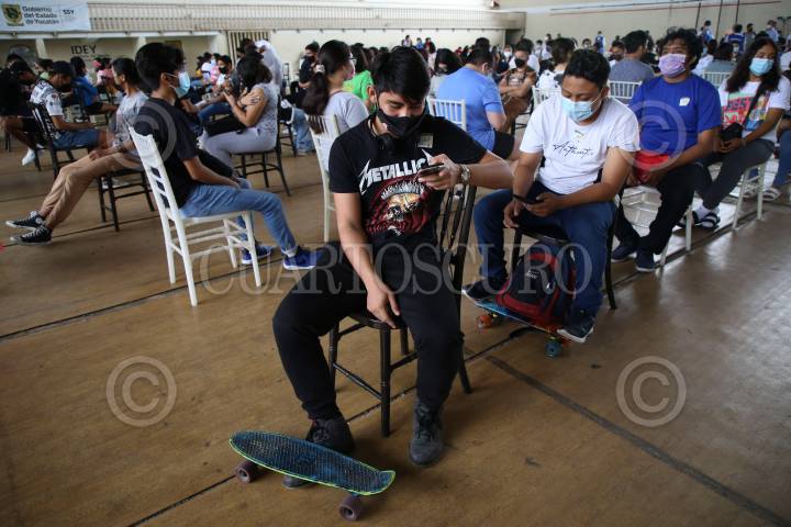 Jóvenes de 15 a 17 años recibieron la segunda dosis de la vacuna contra el Covid-19, en Mérida, Yucatán.