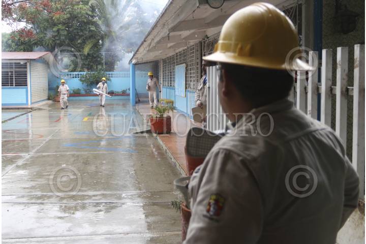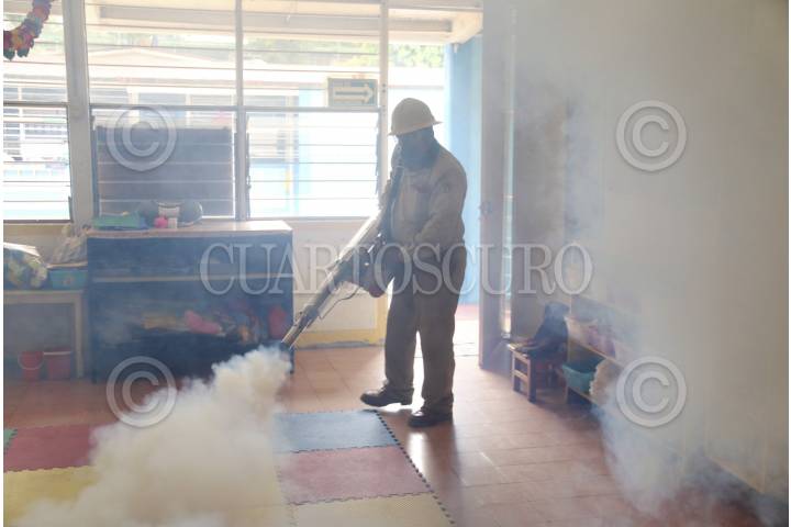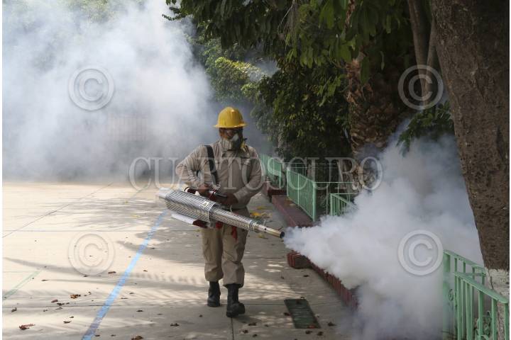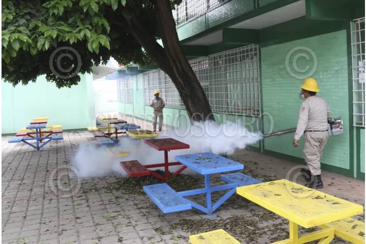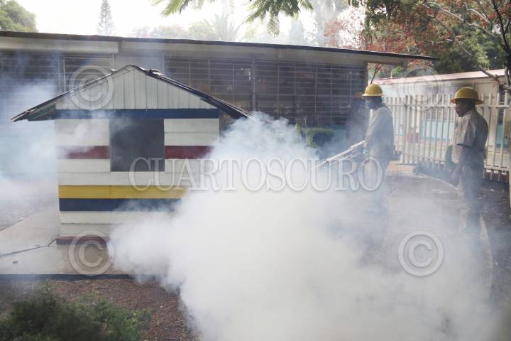 OAXACA, OAXACA, 21AGOSTO2015.- Trabajadores del área de Vectores del sector salud iniciaron un programa de fumigación en diversas escuelas de la ciudad de Oaxaca a fin de acabar con los mosquitos transmisores de enfermedades como el dengue o incluso el chikunguya, misma que se ha esparcido por el territorio estatal y nacional, dicha enfermedad no es mortal, sin embargo si se llega a combinar con padecimientos crónico degenerativos el afectado podría perder la vida. FOTO: ARTURO PÉREZ ALFONSO /CUARTOSCURO.COM