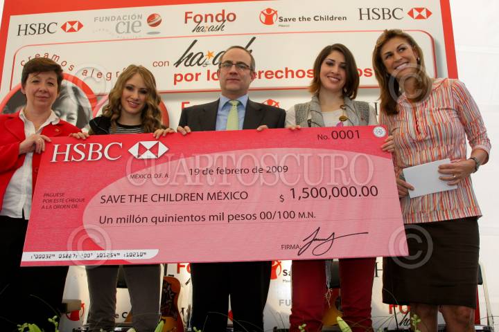 MÉXICO, D.F., 19FEBRERO2009.- Maria Josefina Menendez, directora general de Save the Childrens México, Hanna Perez Mosa, inytegrante del grupo Ha-Ash, Roy Caple diretor ejecutivo de asuntos publicos de HSBC, Ashley Perez Mosa, integrante del grupo Ha-Ash Y Guillermina Pigram directora ejecutiva de "CIE" durante su visita al centro comunitario Thechildren México "Cerro Judio", donde entregaron un donativo por 150 mil pesos que sirvió para crear una ludoteca en este centro. FOTO:RICARDO CASTELAN/CUARTOSCURO