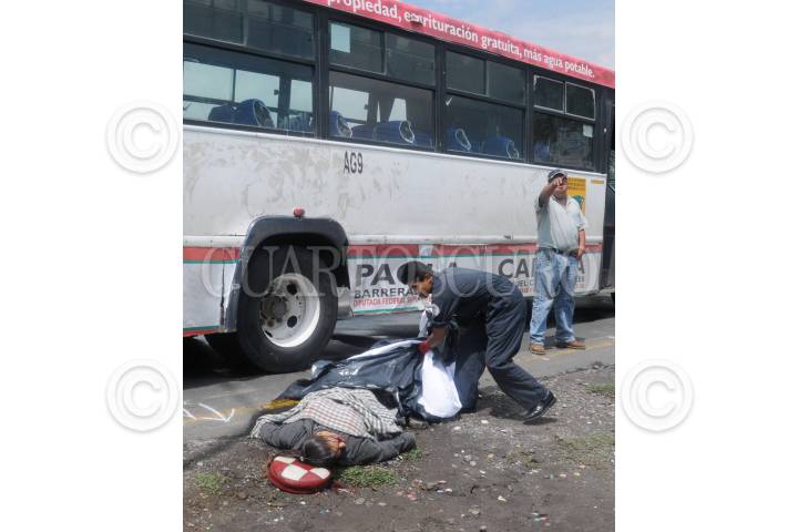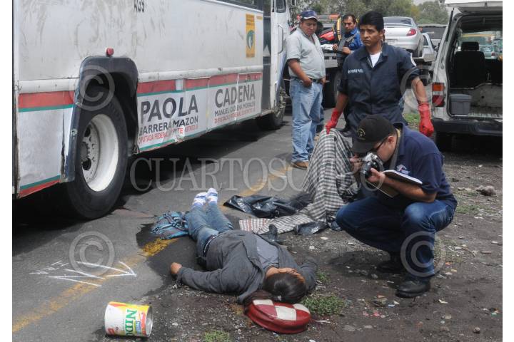 NEZAHUALCOYOTL, ESTADO DE MÉXICO, 01JULIO2009.- Una mujer de 35 años de edad, que respondía al nombre de Filomena Vargas Gutiérrez, perdió la vida al ser atropellada por un camión "chimeco" con engomado 244-NZ-054, del Transporte Metropolitano del Estado de México. Esto sucedió en avenida Bordo de Xochiaca entre la calle 19 y calle 20 colonia El Sol. FOTO: LUIS CARBAYO/CUARTOSCURO.COM