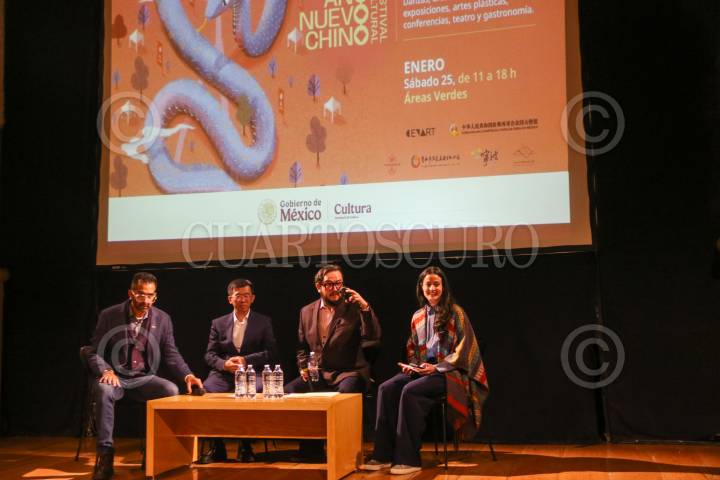 CIUDAD DE MÉXICO. 15ENERO2025.- En conferencia de prensa este medio día, actividades con motivo del Festival Cultural de Año Nuevo Chino, que inicia este sábado 25 de enero, en el Centro Nacional de la Artes; que se localiza en Río Churubusco en la colonia Country club de la alcaldía Coyoacán. Raúl Uribe, Yang Chuanying, Vicente Jurado y Yaride Risk. FOTO: VICTORIA VALTIERRA/CUARTOSCURO.COM