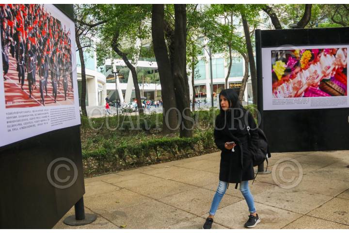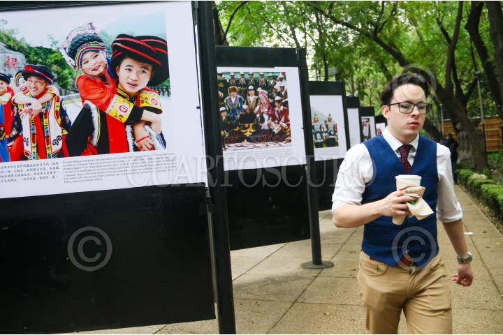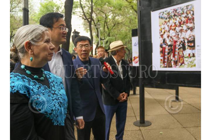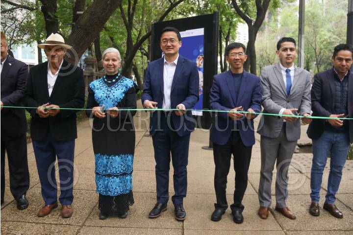 CIUDAD DE MÉXICO. 19FEBRERO2025.- La Embajada de China y la Secretaría de Cultura de la CDMX; inauguraron la exposición “Espléndidos trajes étnicos de china”, en la Galería Abierta Paseo de las Culturas Amigas. Rocío Lombera, Zhu Jian y José Manuel Rodríguez encabezaron el evento en el Paseo de la Reforma. FOTO: VICTORIA VALTIERRA/CUARTOSCURO.COM