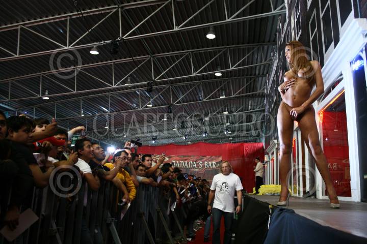 MÉXICO D.F., 17FEBRERO2008.- Una de las estrellas de películas porno posa ante cientos de personas que se deleitan al verla durante la Expo Sexo. FOTO: SASHENKA GUTIERREZ/CUARTOSCURO.COM