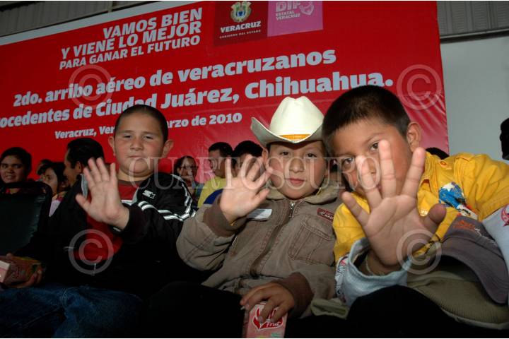 VERACRUZ, VERACRUZ, 31MARZO2010.- Cerca de 40 familias arribaron a la ciudad de Veracruz procedentes de Ciudad Juarez, Chihuahua en lo que fue el segundo vuelo donde se busca regresar a su estado natal a veracruzanos que han radicado en dicha ciudad fronteriza algunos hasta por catorce años. FOTO: JOSÉ CANDELARIO/CUARTOSCURO.COM