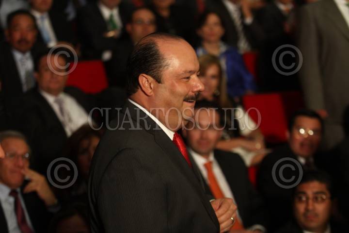 PACHUCA, HIDALGO, 01ABRIL2011.- Cesar Duarte, gobernador del estado de Chiuahua durante la toma de protesta de José Francisco Olvera Ruiz, como gobernador constitucional del estado de Hidalgo en el auditorio Gota de Plata. FOTO: RODOLFO ANGULO/CUARTOSCURO.COM