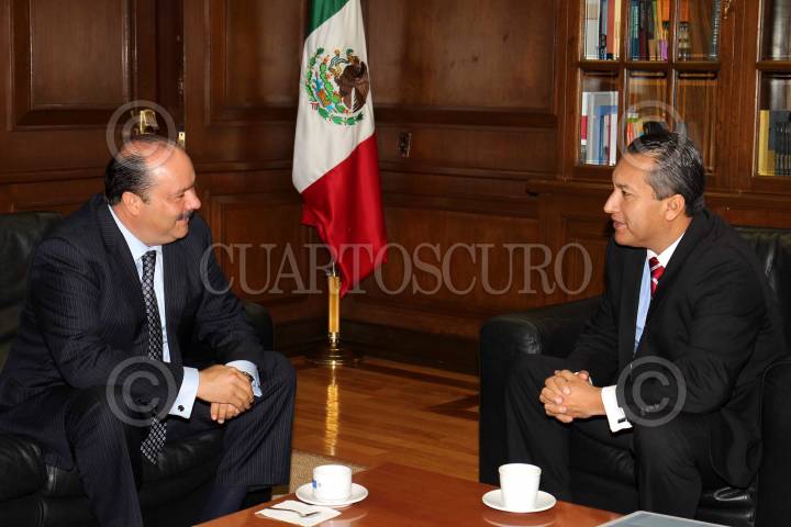 MEXICO,D.F.,21JULIO2011.- Cesar Duarte, Gobernador del estado de Chiuahua junto a Francisco Blake Mora, Secretario de Gobernacion durante la reunion que sostuvieron el dia de hoy. FOTO: CUARTOSCURO.COM