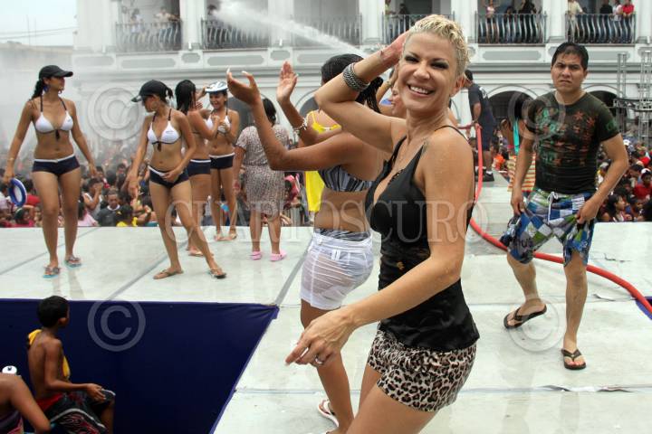 BOCA DEL RÍO, VERACRUZ., 24JULIO2010.- Silvia Irabien “La Chiva”, participó en el tradicional baño popular de este municipio donde las autoridades se encargan de mojar a los boqueños y turistas que se acercan a disfrutar este evento año con año. FOTO: FÉLIX MÁRQUEZ/CUARTOSCURO.COM