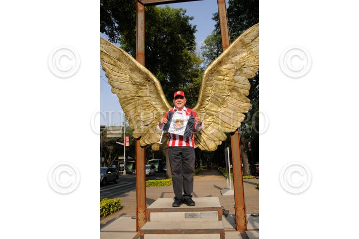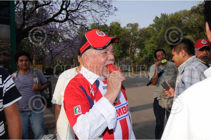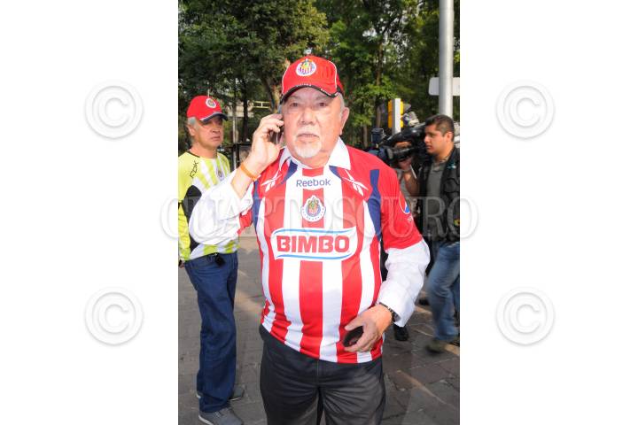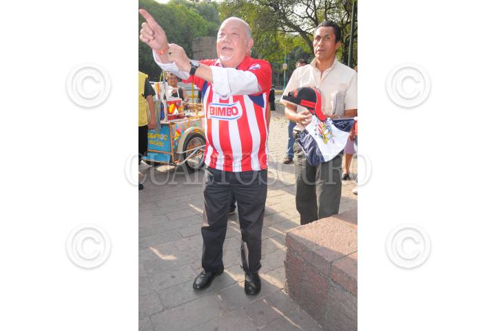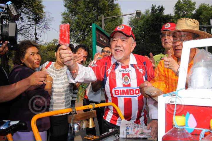 MEXICO, D.F., 11ABRIL2011.-El comediante Sergio Corona se quedó esperando a su colega Manuel "El Loco" Valdés para cobrar la apuesta que realizaron con motivo del clásico de futbol entre las chivas del Guadalajara y las águilas del América el cual consistía en que éste último vendiera paletas a lo cual sergio regalo unas a los medios de comunicacion que asisitieron. FOTO: FRANCISCO RODRIGUEZ/CUARTOSCURO.COM