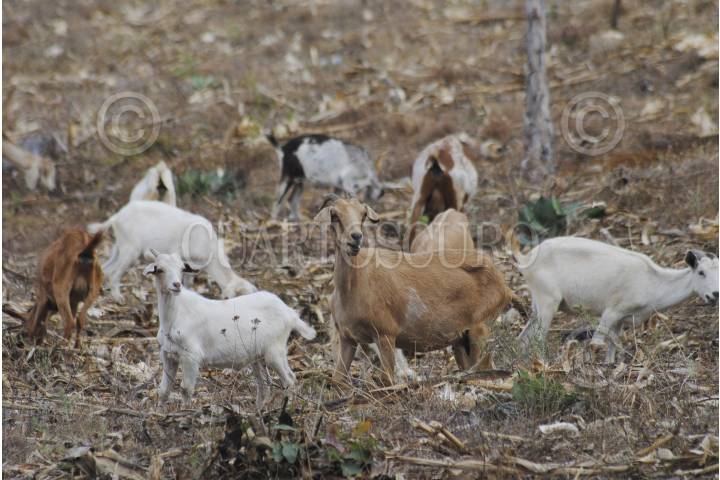 Una niña pastorea un pequeño hato de chivos en los lomeríos de Tetelcingo Morelos.