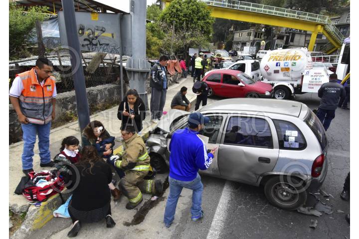 CIUDAD DE MÉXICO, 06MARZO2017.- Cuatro vehículos participaron un choque con un pipa de gas, en el kilómetro 22 de la autopista México-Cuernavaca. Una mujer y sus dos hijos pequeños que viajaban en un Chevy resultaron heridos. FOTO: ARMANDO MONROY /CUARTOSCURO.COM