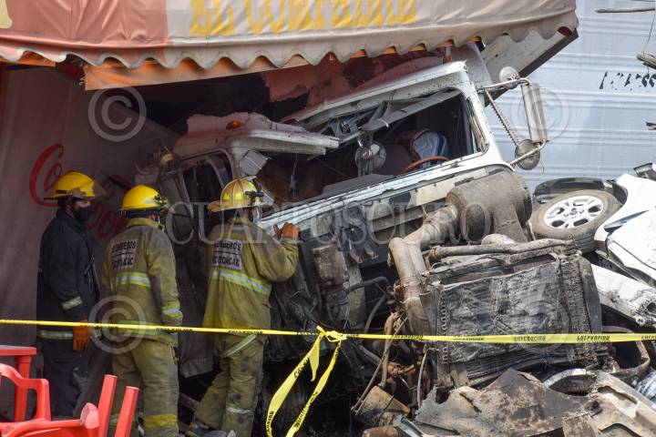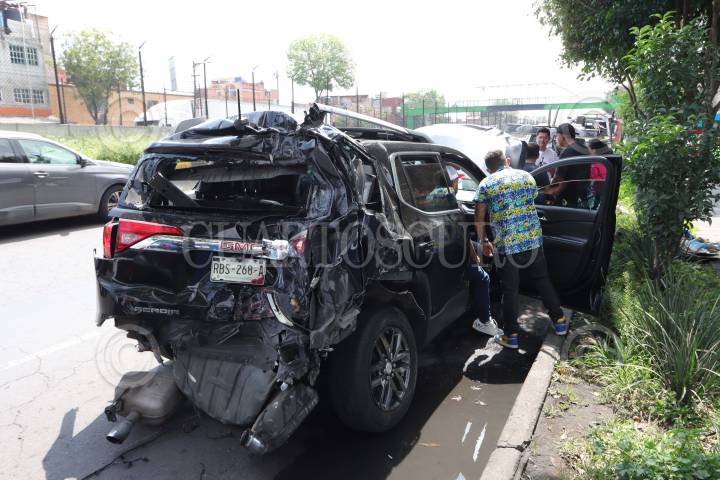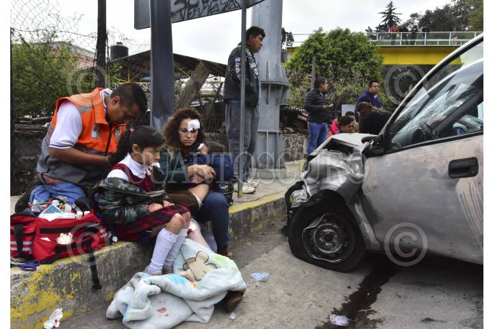 TLALNEPANTLA, ESTADO DE MÉXICO, 27JUNIO2016.- Diez personas resultaron lesionadas al registrarse un choque múltiple provocado por un trailer que circulaba sobre el Periférico Norte con dirección a la Ciudad de México, a la altura de Valle Dorado, un hombre termino prensado dentro de una camioneta, varios pasajeros que viajaban en un camión del transporte público fueron atendidos. FOTO: ARMANDO MONROY /CUARTOSCURO.COM