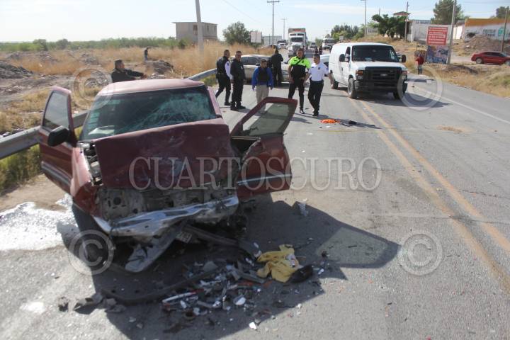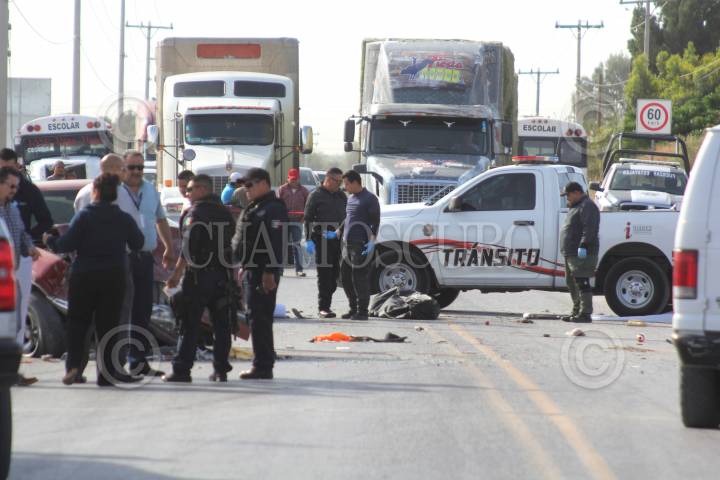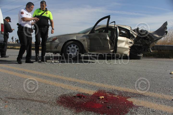 CIUDAD JUÁREZ, CHIHUAHUA, 18ABRIL2018.- Tres estudiantes de preparatoria murieron, en un choque sobre la carretera Juárez-Porvenir entre un camión escolar, dos vehículos y una bicicleta. En ese accidente el autobús donde viajaban alumnos del CECyT fue embestido de costado por un automóvil Ford Taurus, modelo 2001, color arena, que en apariencia invadió carril contrario sobre el kilómetro 20, a la altura del poblado de Loma Blanca. En el lugar murió también uno de los estudiantes que viajaban en el camión, por lo que fueron dos los jóvenes, identificados como Juan Carlos Ramos y Diego Armando Marín, ambos de 16 años, quienes perdieron la vida en el lugar de los hechos. Uno más falleció apenas al ingresar a las instalaciones del al Hospital Regional 66 del IMSS, según los datos policiacos. FOTO: NACHO RUIZ /CUARTOSCURO.COM